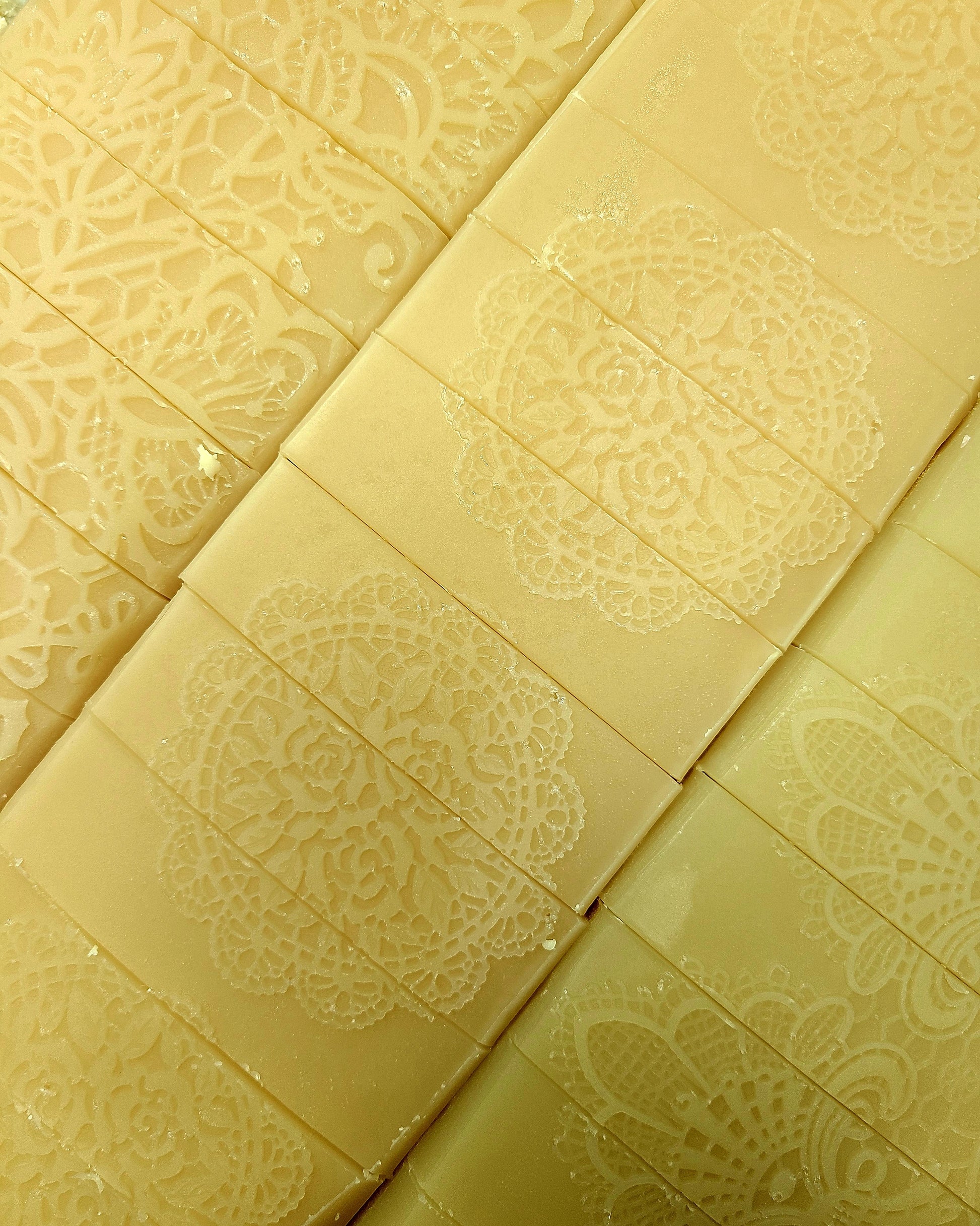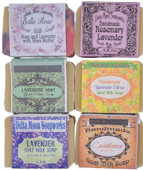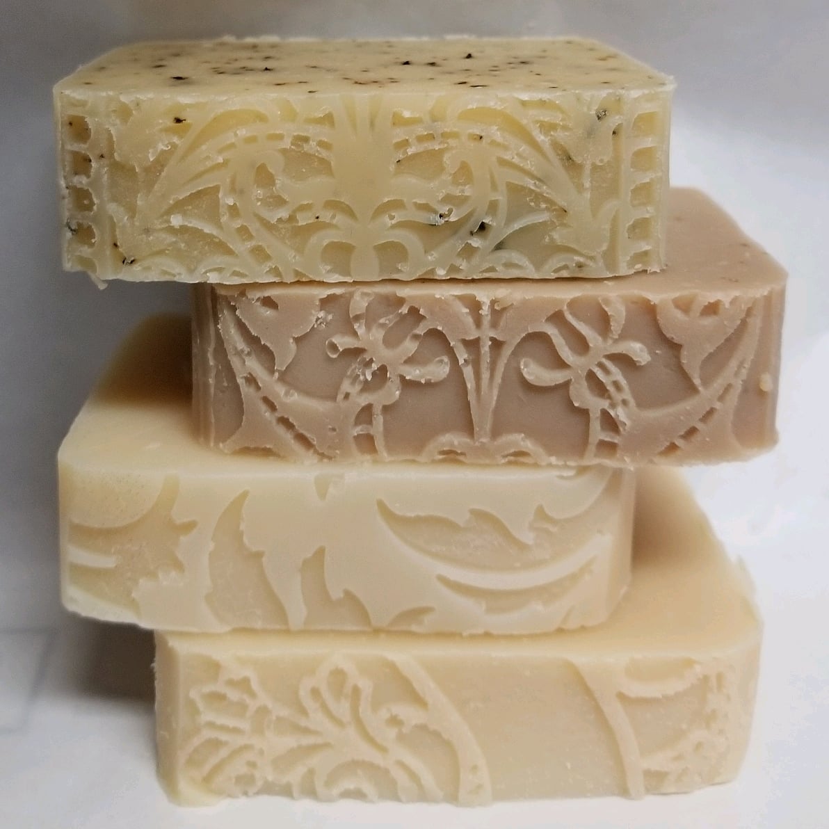 All of our soaps are made with Saponified Olive OIl, Cococnut Oil, Soybean Oil, Goat Milk, Glycerine, Honey, Vitamin E